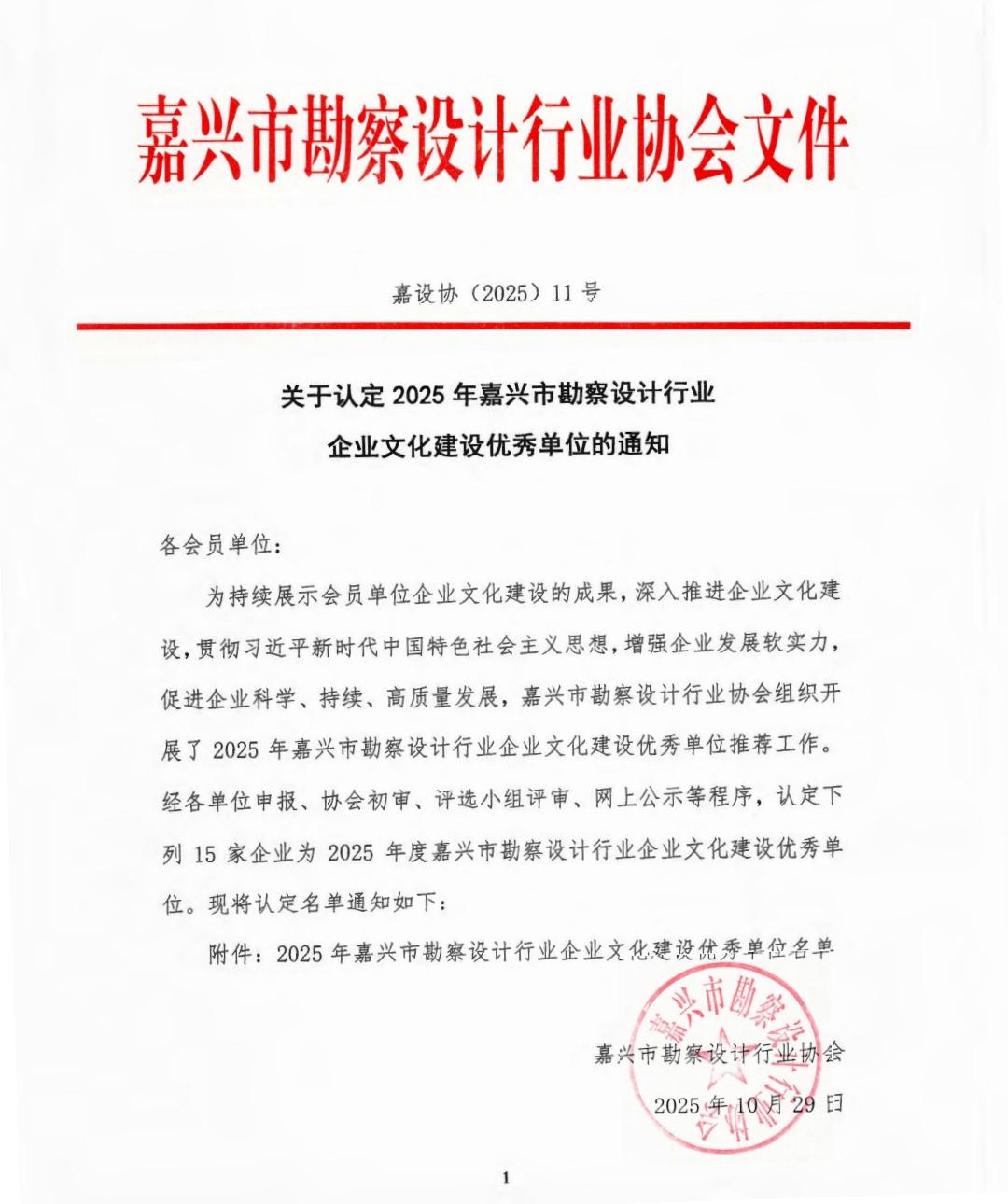 - 我公司荣获“2025年嘉兴市勘察设计行业企业文化建设优秀单位”称号